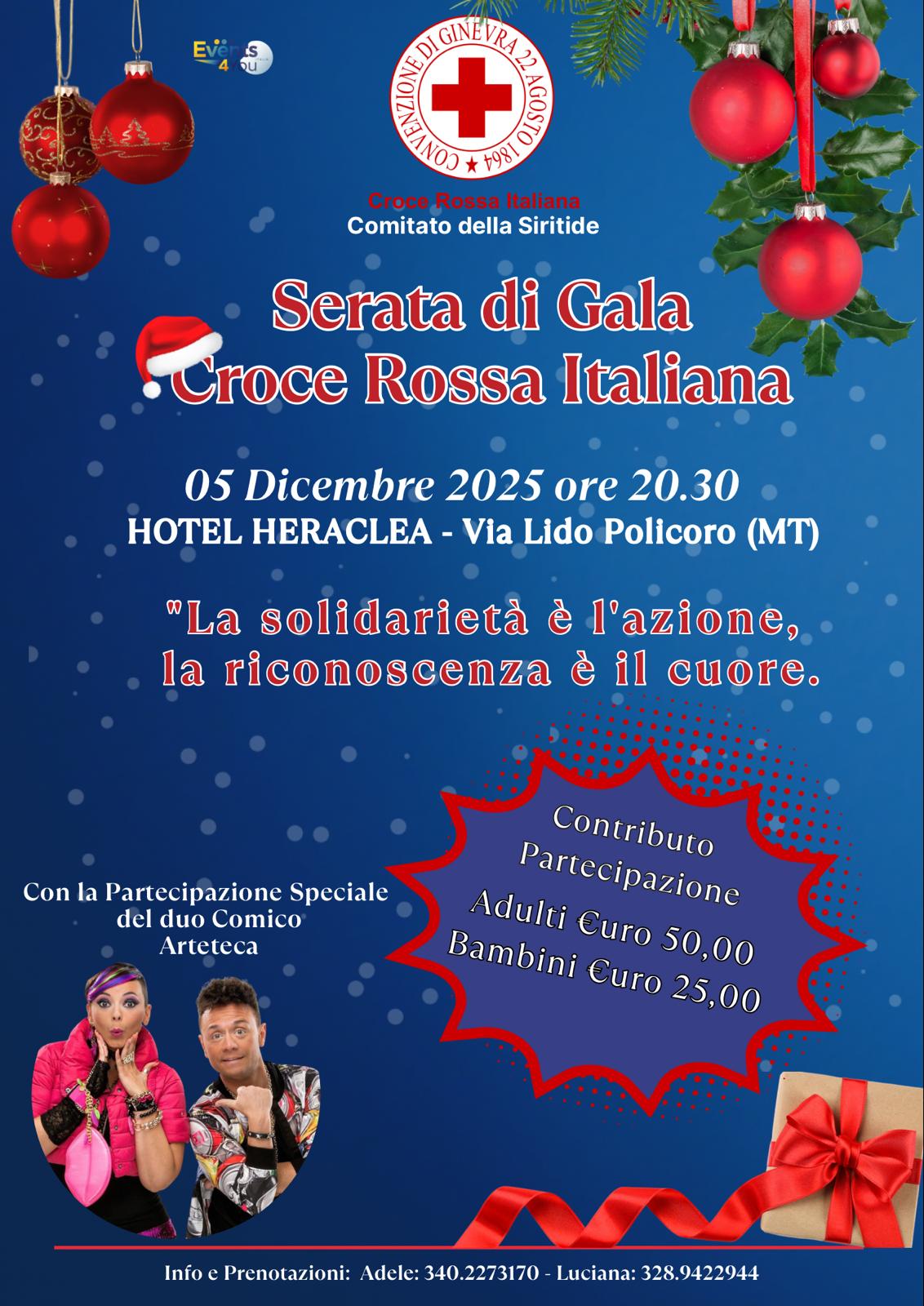 Serata di Gala Croce Rossa Italiana. con la partecipazione speciale del duo comico "Arteteca" 5 dicembre 2025 Hotel Heraclea, Policoro